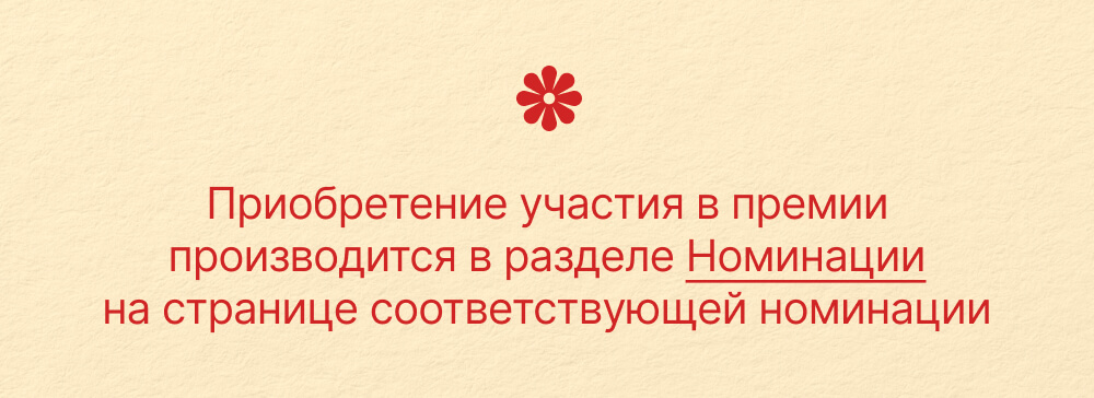 Все результаты Премии оглашаются только на Церемонии Награждения Премии в день проведения финала 28 сентября 2025 г. (подробности в разделе место проведения)